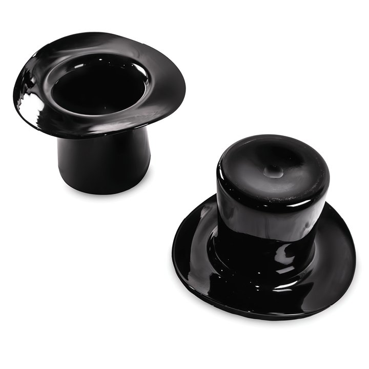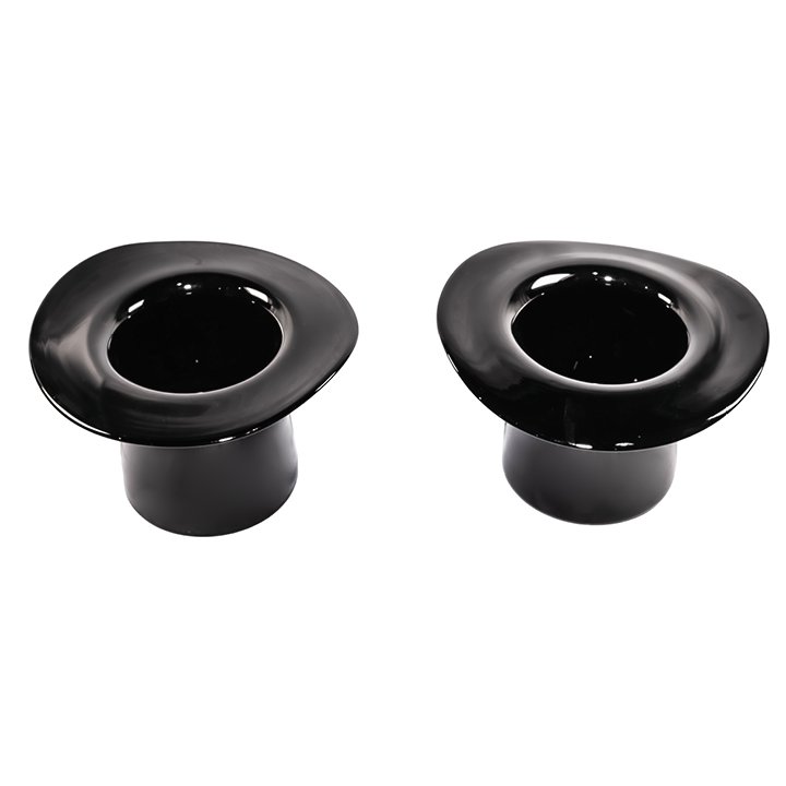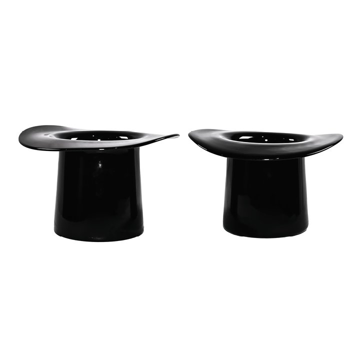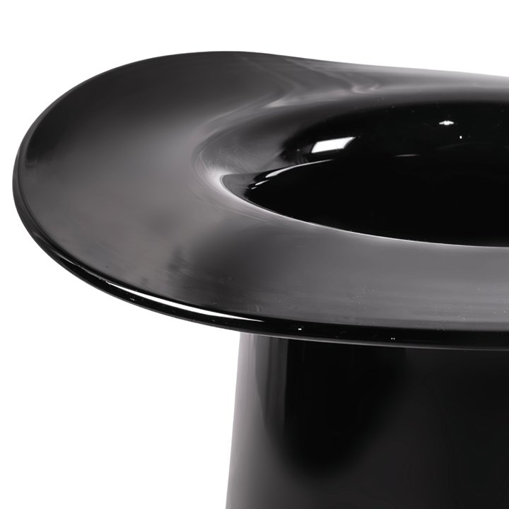 Unique Murano glass vases in the form of top hats, hand-blown in opaque black glass with a smooth reflective surface and wide curved brim, originally designed as a champagne bucket. May be purchased individually or as a set.