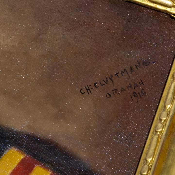 The painting is signed and dated by Charles Cluytmans, a little-documented artist active in colonial Algeria during the early 20th century. The inscription “Oranan” refers to the city of Oran, then part of French Algeria, known for its rich cultural interplay and ethnographic interest during the Orientalist period.