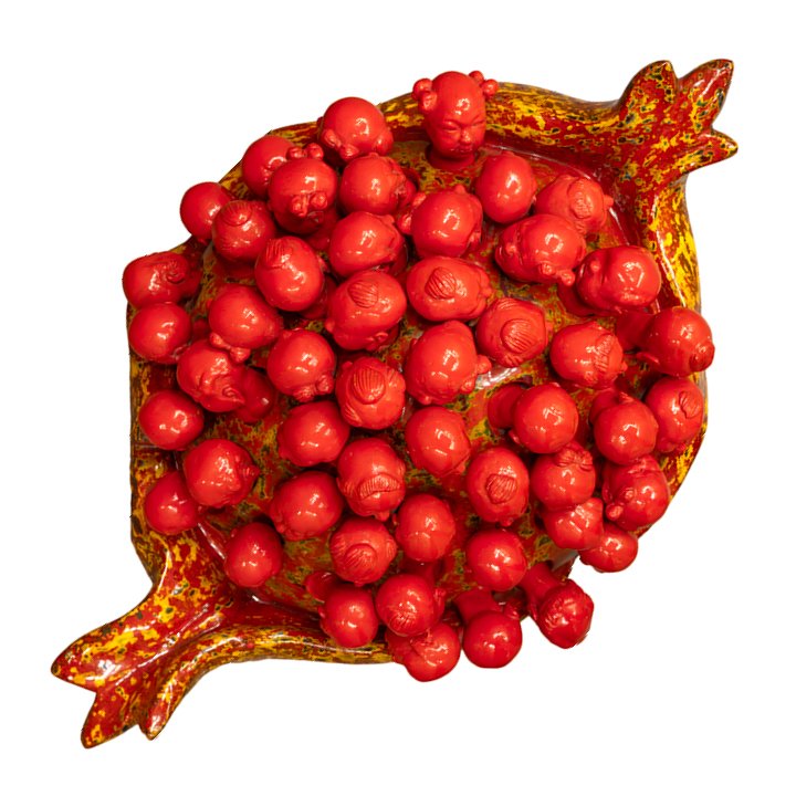 Contemporary mixed media sculpture my Chinese artist Jin Zenghe. Titled "Pomegranate" it is a piece number 2 out of 8 from the limited edition created in 2010. A rough translation of the sculpture, provided by the artist: "Pomegranate bearing bright seeds," explains the idea of creation, yet, provides a room for the viewer's interpretation. Signed on the bottom of the base in Chinese.