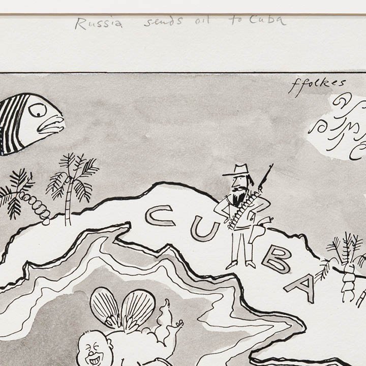 Michael ffolkes, born Brian Davis (British, 1925–1988), was a cartoonist and illustrator active in post-war British print media. After service in the Royal Navy during the Second World War, he studied at St Martin’s School of Art. He began contributing to Punch in the early 1950s and went on to publish work in The New Yorker, The Spectator, Private Eye, and several national newspapers. Ffolkes also illustrated books and worked as a storyboard artist for television and film productions. His career encompassed editorial cartooning, humorous illustration, and visual commentary across mid- to late-20th-century British publications.