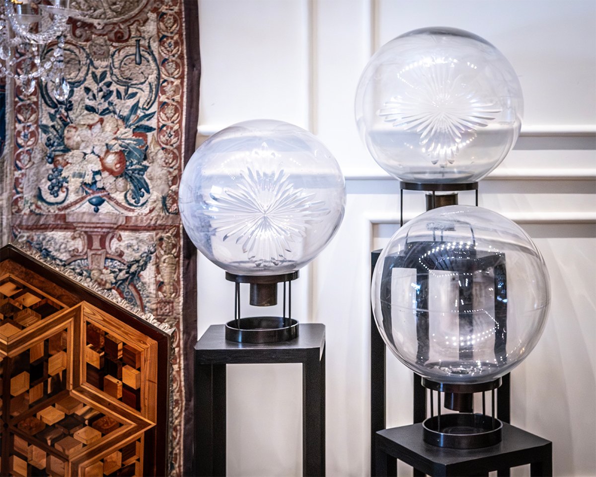 Apothecary globes were used in chemist shops from the 19th to early 20th century, often placed in windows to attract attention. Whether filled with colored liquid or left clear, they served as both signage and symbolic objects of the trade.