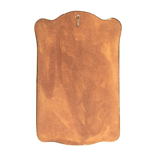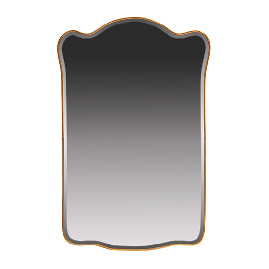 Medium size bevelled mirror in rectangular shape with curved corners. Surmounted into brass frame with brass nails on a wood panel. Design in style of Gio Ponti, probably was distributed in the La Rinascente department store in Milan.