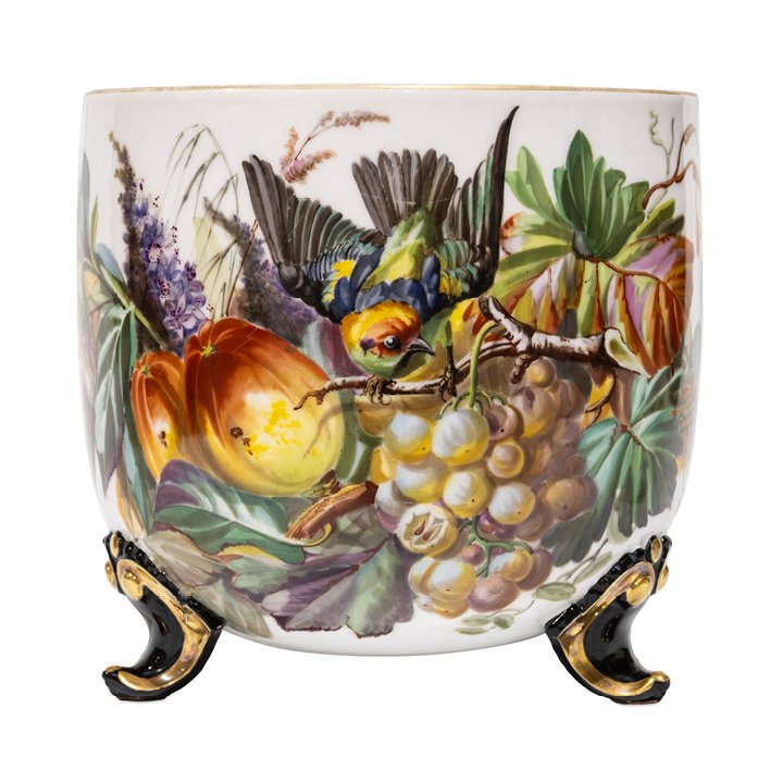 Ceramic Jardiniere with Hand-Painted Bird and Fruits Decor