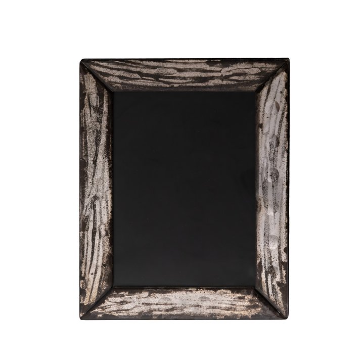 An antique standing photo frame with a border assembled from etched mirrored glass panels, one of the three pieces in our collection – in medium size. Completed with a black velvet lining.