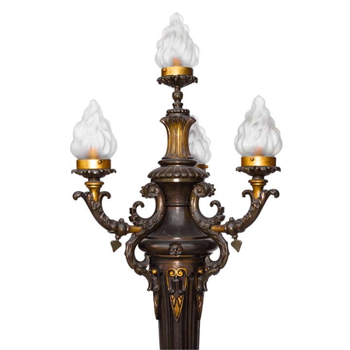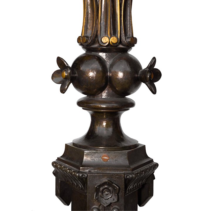 The foundry of J.G. Buckens was established in Liege, Belgium, in the early 19th century by Jean Guillaume Buckens (1802–1872), a bronzier and designer known for his monumental decorative works in iron and bronze. His workshop produced streetlamps, gasoliers, and architectural ornamentation for civic buildings and public spaces in Belgium and abroad. Buckens participated in major industrial exhibitions in the 1850s and 1860s, including Paris and London, and was noted for combining cast iron with ornamental bronze in the prevailing historicist styles of the period.