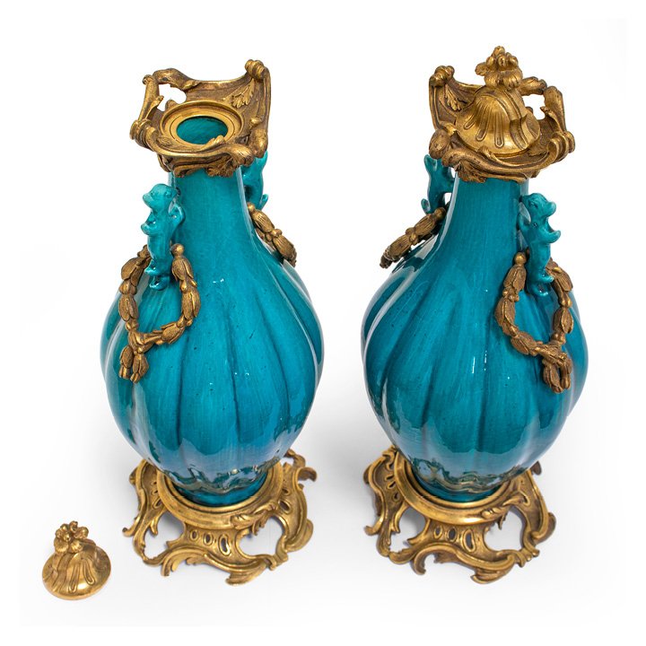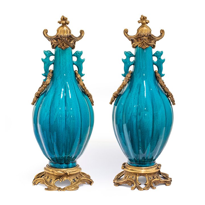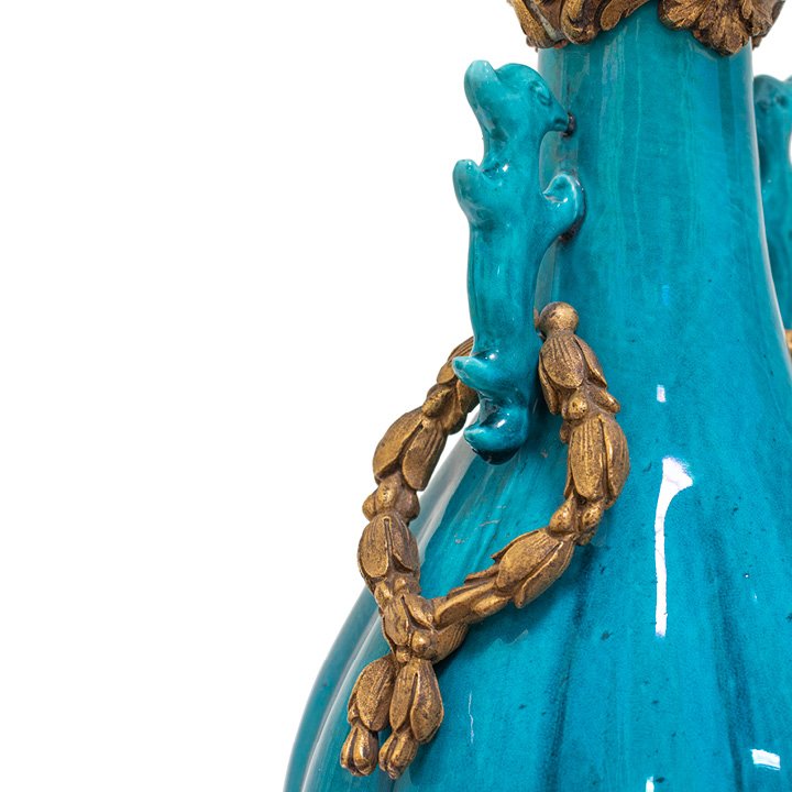 Pair of Turquoise Vases with Gilt Bronze Mounts