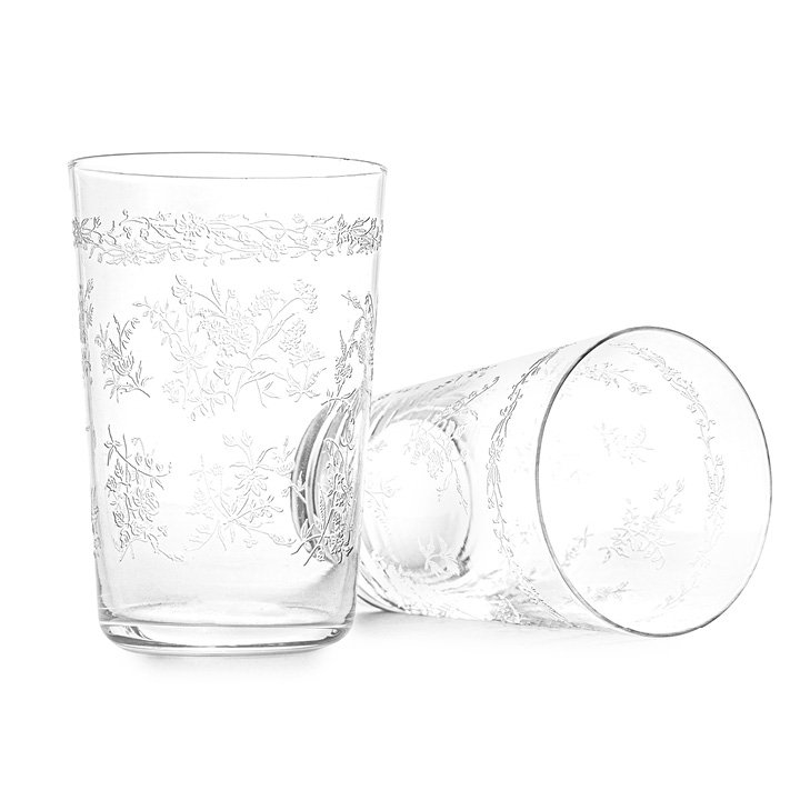Set of 8 Tumbler Glasses with Etched Floral Decor